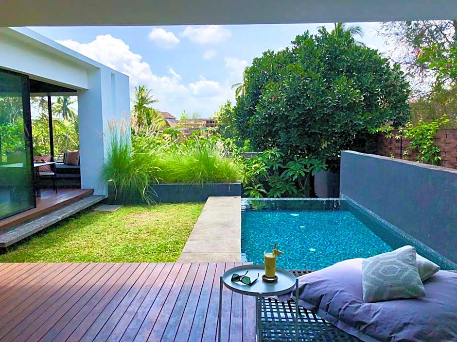 This villa has a garden view and a private pool with an oversize and custom-made hammock. It offers a separate air-conditioned cabana with a living room, daybed, and a dining table for 4 people. Guests enjoy: - Welcome drinks - Daily afternoon refreshments - WiFi access - Bicycle usage - Complimentary Ubud shopping bag and umbrella